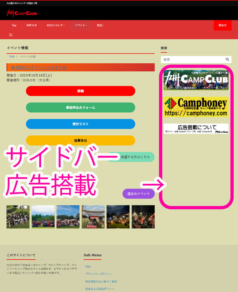 広告搭載による九州キャンプ倶楽部の支援者を募集しております。